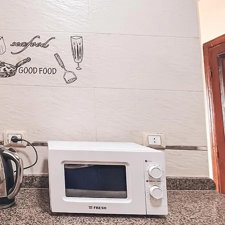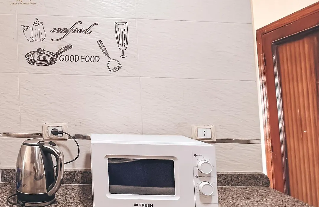تحتوي هذه الشقة على المطبخ المجهز بالكامل والثلاجة الصغيرة المزودة بالبار ومعدات صنع القهوة والشاي، وتوفّر المايكرويف والغلاية الكهربائية وثلاجة. Queen Pyramids View Apartment تبعد 28 دقائق بالسيارة عن مطار القاهرة الدولي.